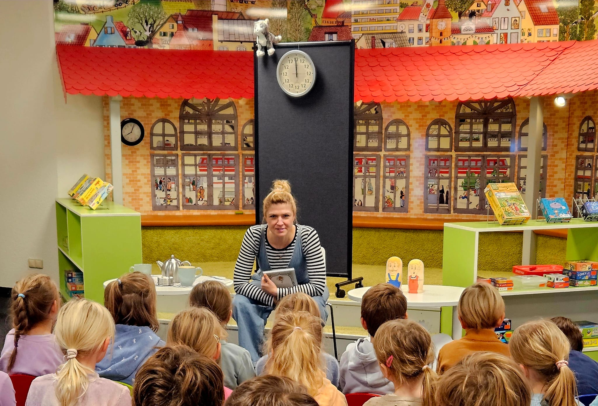 Am Montag, den 27. Oktober, fand in der Bibliothek Höchberg eine besondere Lesung für unsere vier 2. Klassen statt. Die Schauspielerin Christina Motsch las aus dem Buch „Lenchens Geheimnis“ von Michael Ende vor und begeisterte die Kinder mit ihrer lebendigen und ausdrucksstarken Vortragsweise. Mit viel schauspielerischem Talent und Einfühlungsvermögen erweckte sie die Geschichte zum Leben und zog die jungen Zuhörerinnen und Zuhörer in ihren Bann. Die Lesung war nicht nur spannend und unterhaltsam, sondern auch sehr anschaulich gestaltet – ein echtes Erlebnis für die Kinder. Alle hatten großen Spaß und tauchten voller Neugier in Lenchens Geschichte ein.